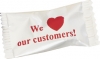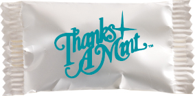 Say “Thank You” with a refreshing, creamy white buttermint candy blended with a buttery richness! Individually wrapped stock logo printed mints. Comes in Standard White Wrapper with Standard PMS color imprint. Stock wrappers are perfect for tight budgets!