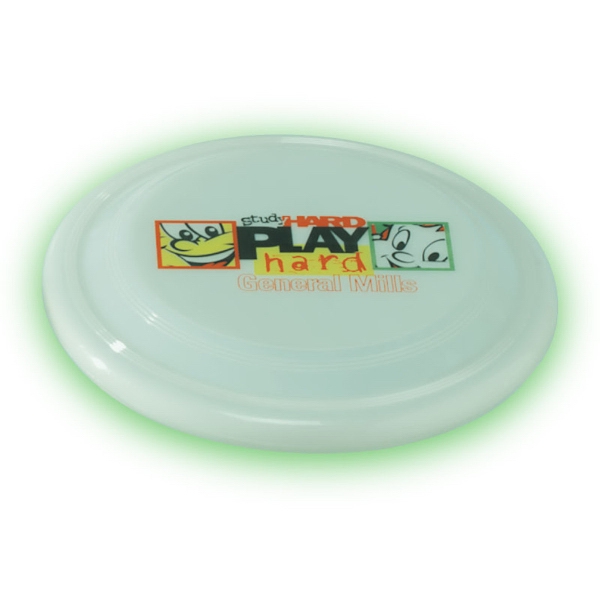 Glow In The Dark Flyer. Child safe, pet safe. MADE IN THE USAHome > Shop > Client Give-Aways > Frisbees & Flyers > 9" Glow In The Dark Pet Friendly Frisbee