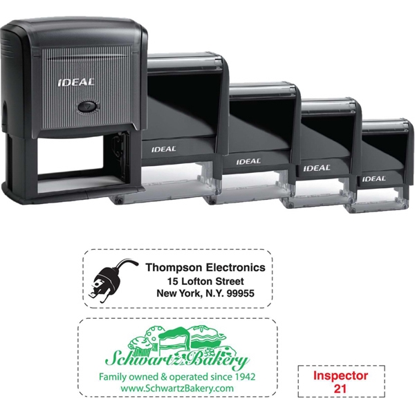 The Ideal self inking stamp works and feels as great as it looks. Numerous patented features makes it one of the best stamps on the market. Just one impression and you will appreciate the ergonomic shape and heavy duty construction. The Ideal self-inking stamp features precision components for a smooth, quiet action and many years of trouble free operation. Perfect for use with our Stock Logo Rx Bags Item #15895
